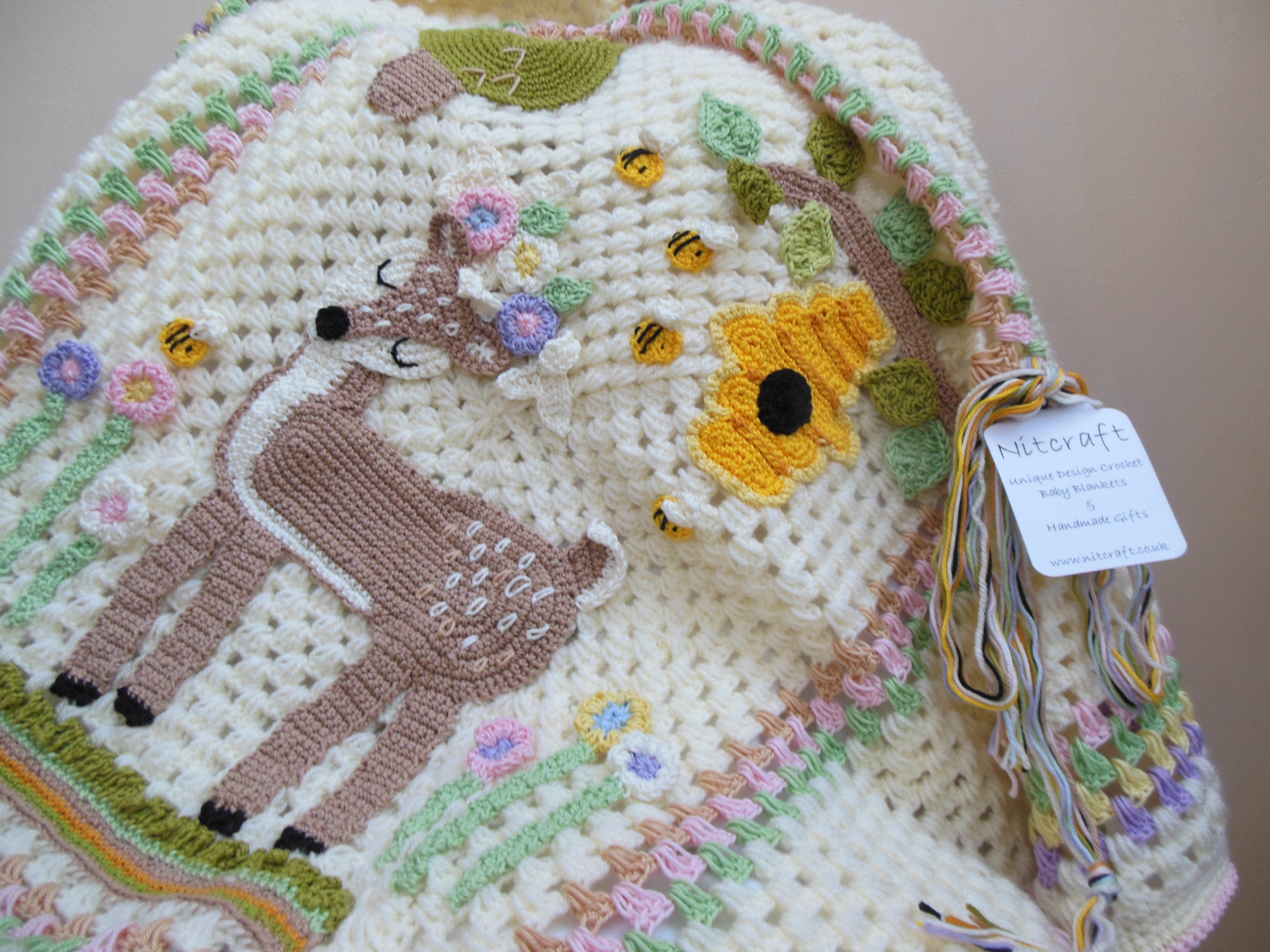 This gorgeous one of a kind blanket, has been both designed and handmade by myself in a clean, smoke free environment. It is finished to a very high standard and suitable for kids, baby and toddler.